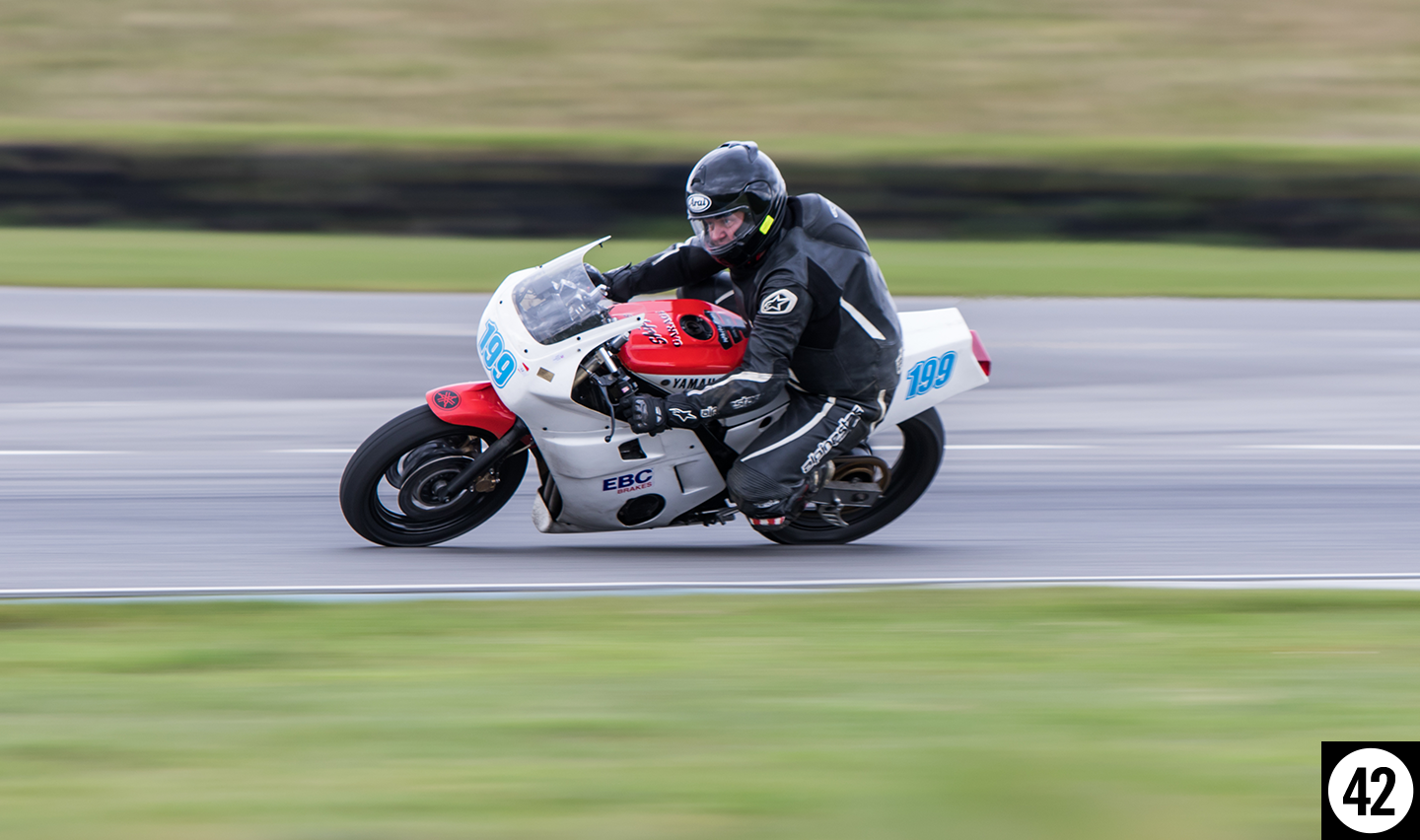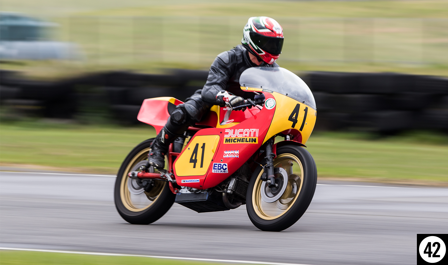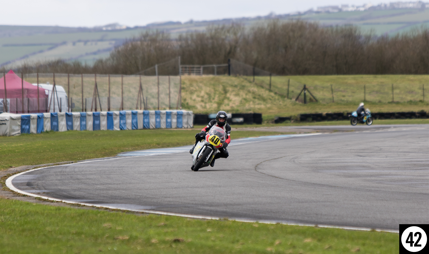 Pembrey is flat and fast, and riders were up to speed quickly on a quick-drying track. Highlights for me included the very well presented Ducati 750s from the early 1970s, as well as some classic Honda’s and Yamaha’s sporting iconic Grand Prix liveries.